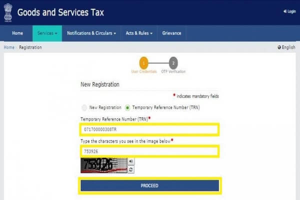 Step 7: Fill the TRN and Captcha code. Enter on the ‘PROCEED, button.