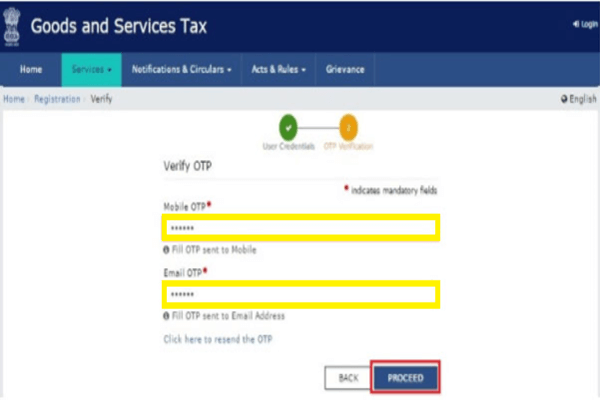 Step 5: Fill the one-time password(OTP) which you received in your mobile number and email address. Click on the ‘PROCEED button.