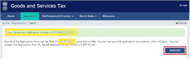 Step 6: Afterward a ‘temporary reference number’(TRN) is generated and then click on the ‘PROCEED’ button.
